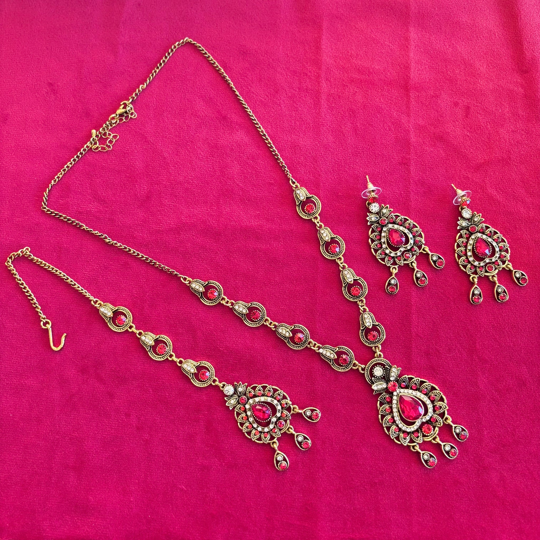 Elegant Traditional 3Pc Necklace with Earrings and Tikka -- Stay Traditional and Luxurious