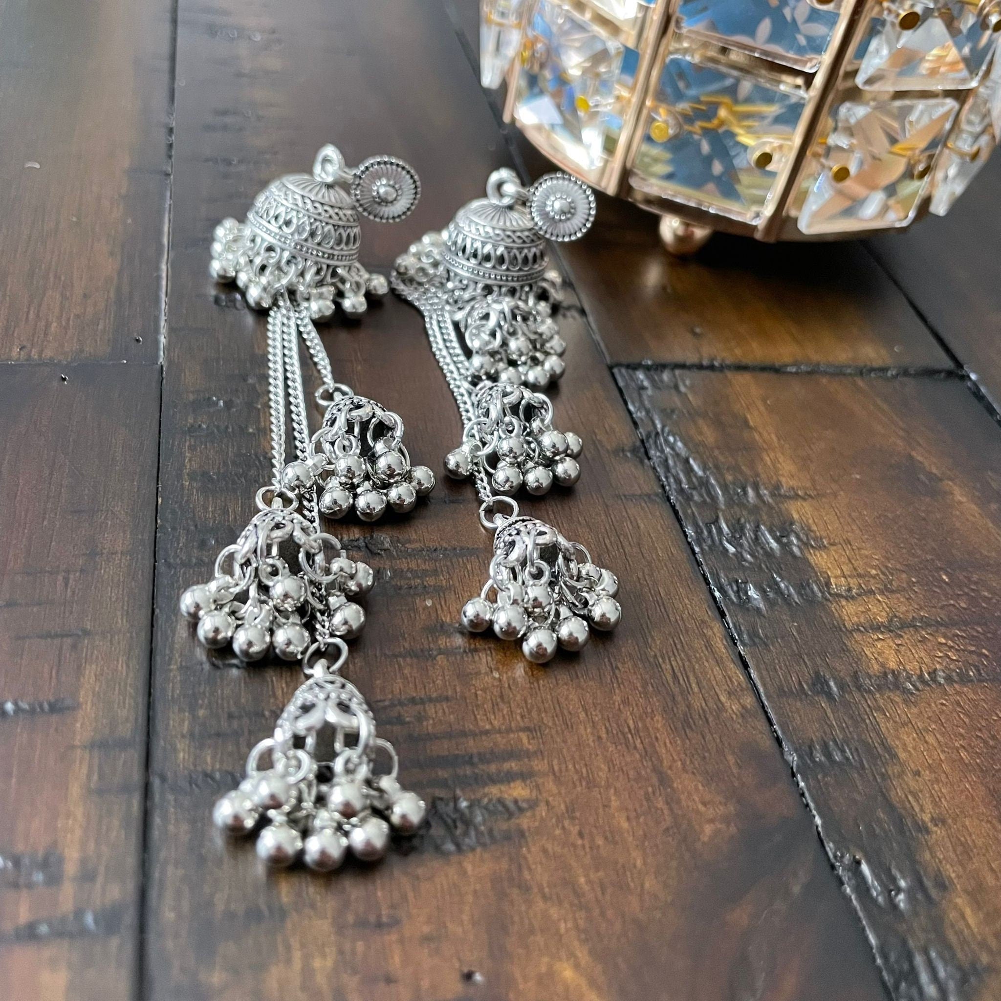Indian Earrings, Long Hanging Jhumka Earrings, Indian Jewelry
