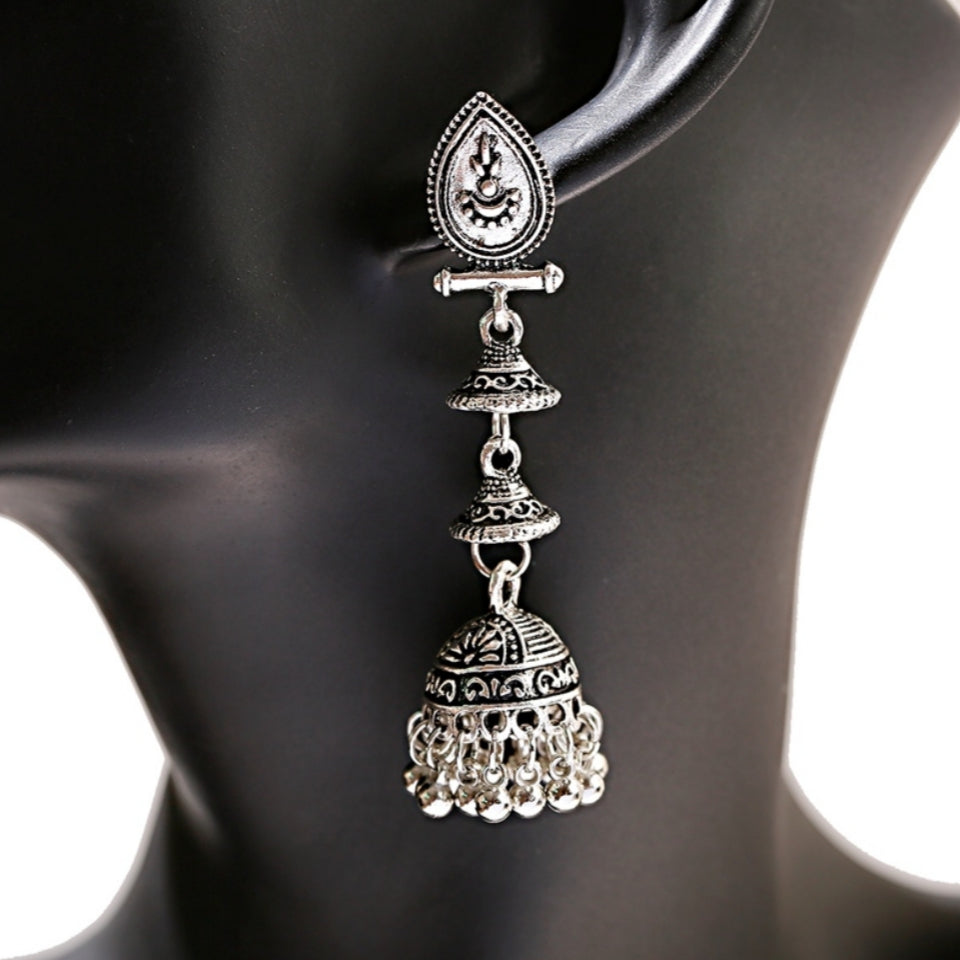 Silver Indian Long Hanging Jhumka Earrings