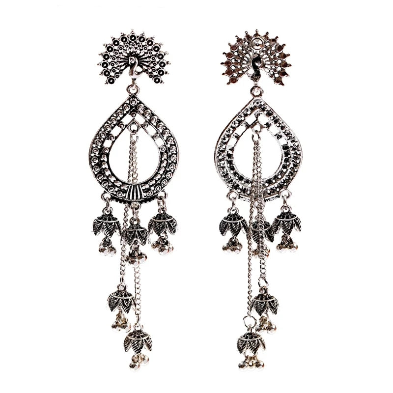 Silver Indian Long Hanging Jhumka Earrings