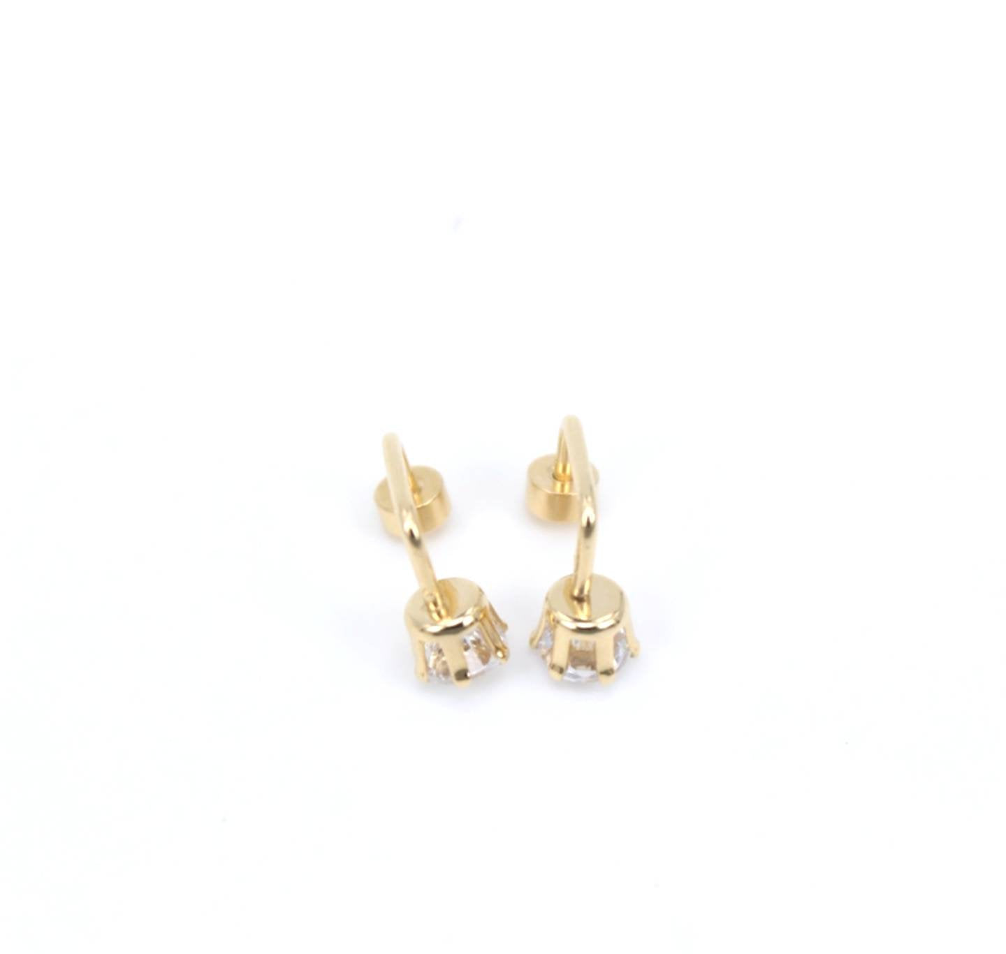 , Titanium, Minimalist Drop Crystal Screw Studs Pair, Hypoallergenic, Minimalist, Gold Studs, Gold Earrings, 5mm Earrings
