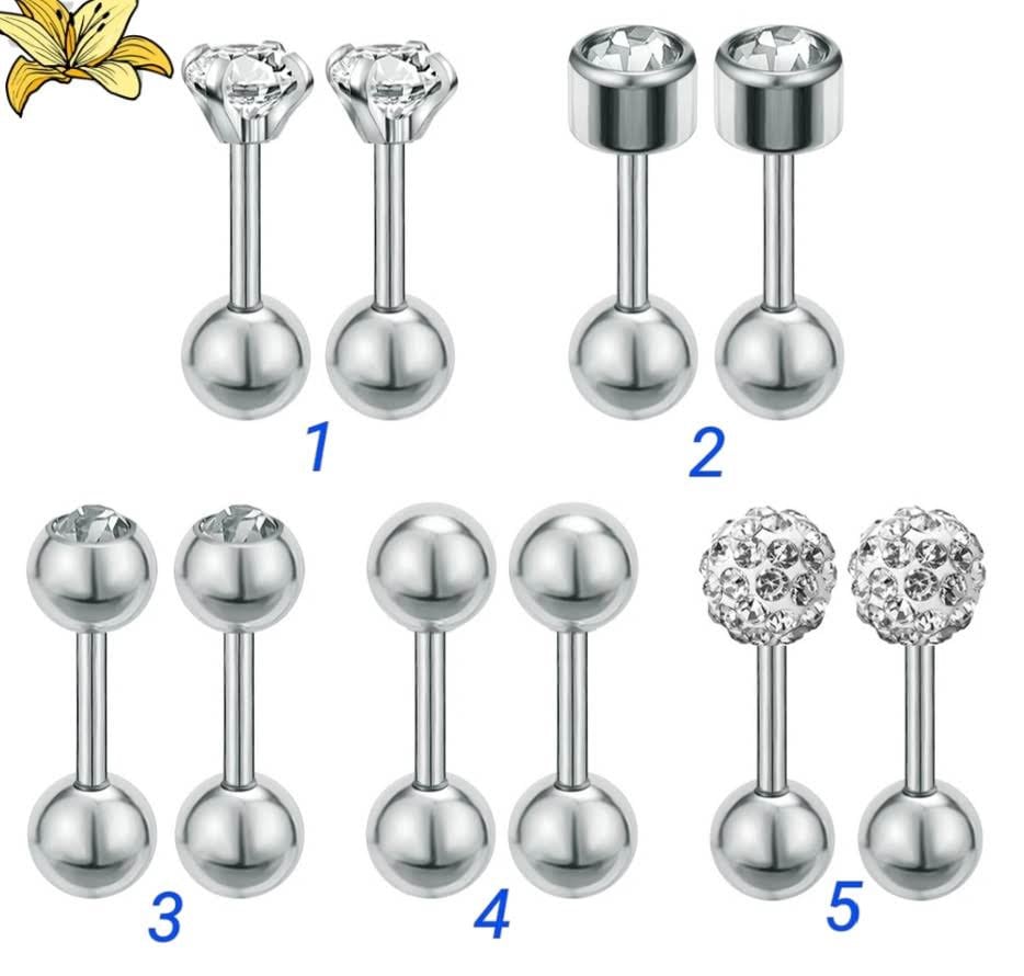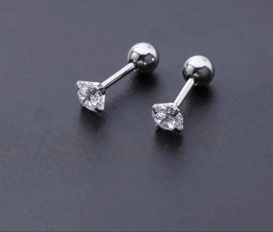 Solid Titanium Screw on Studs with High Quality +AAA Cubic Zirconia