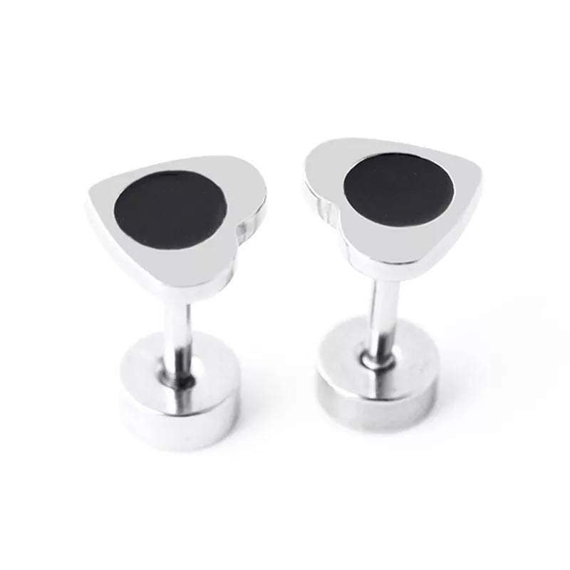 Titanium Silver Heart Circle Back Screw on Studs Pair, Hypoallergenic