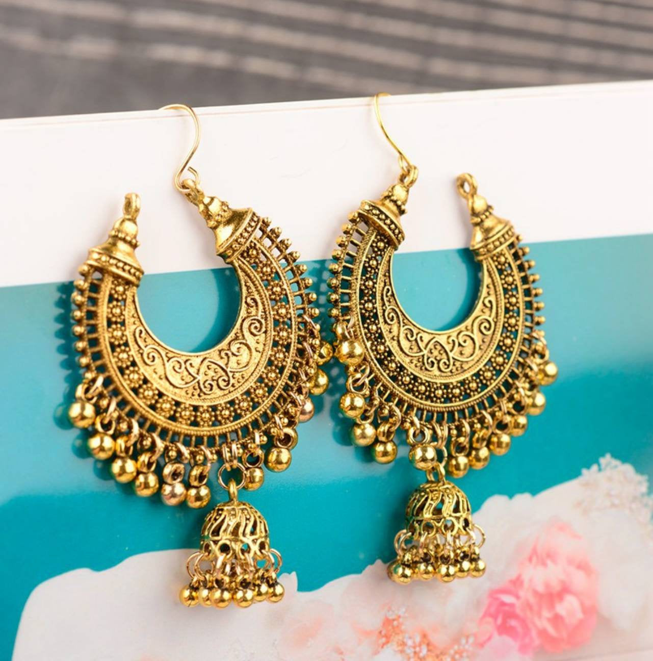 The Gold Indian Large Jhumka Round Earrings Pair is the yin, to your yang. You've found what you're looking for.
