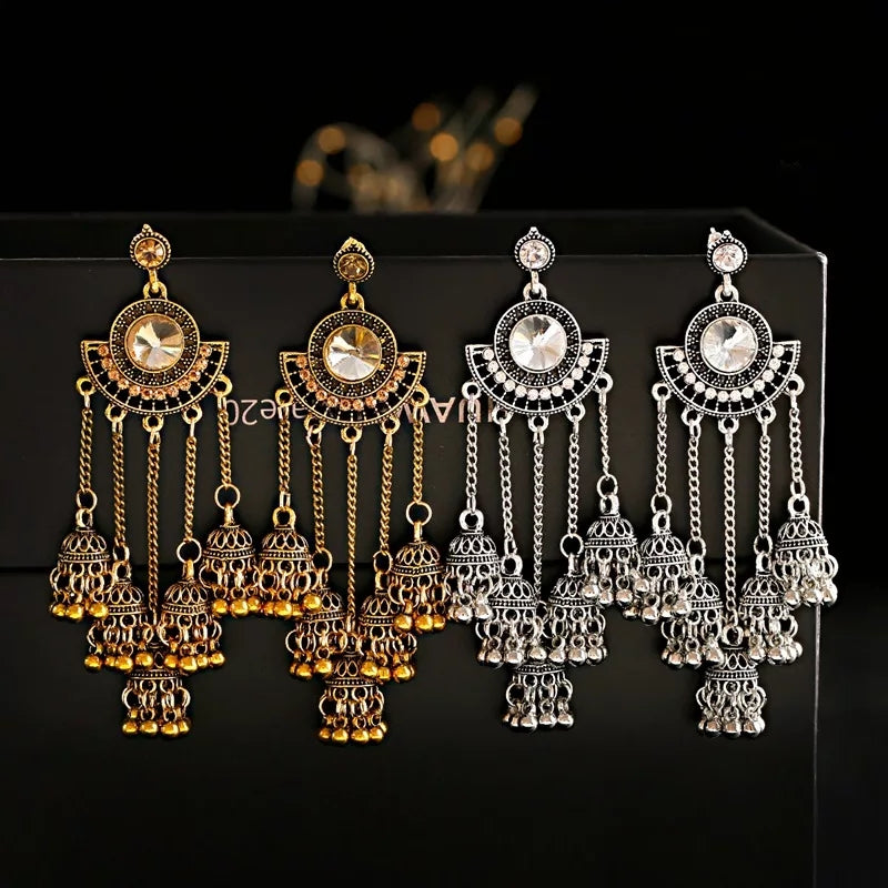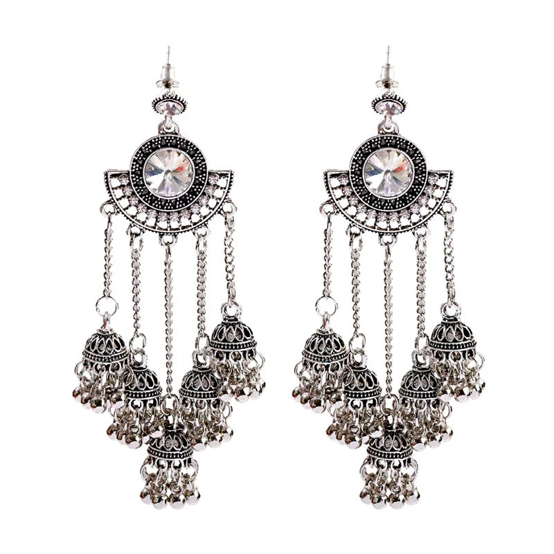 Silver Indian Long Hanging Jhumka Earrings