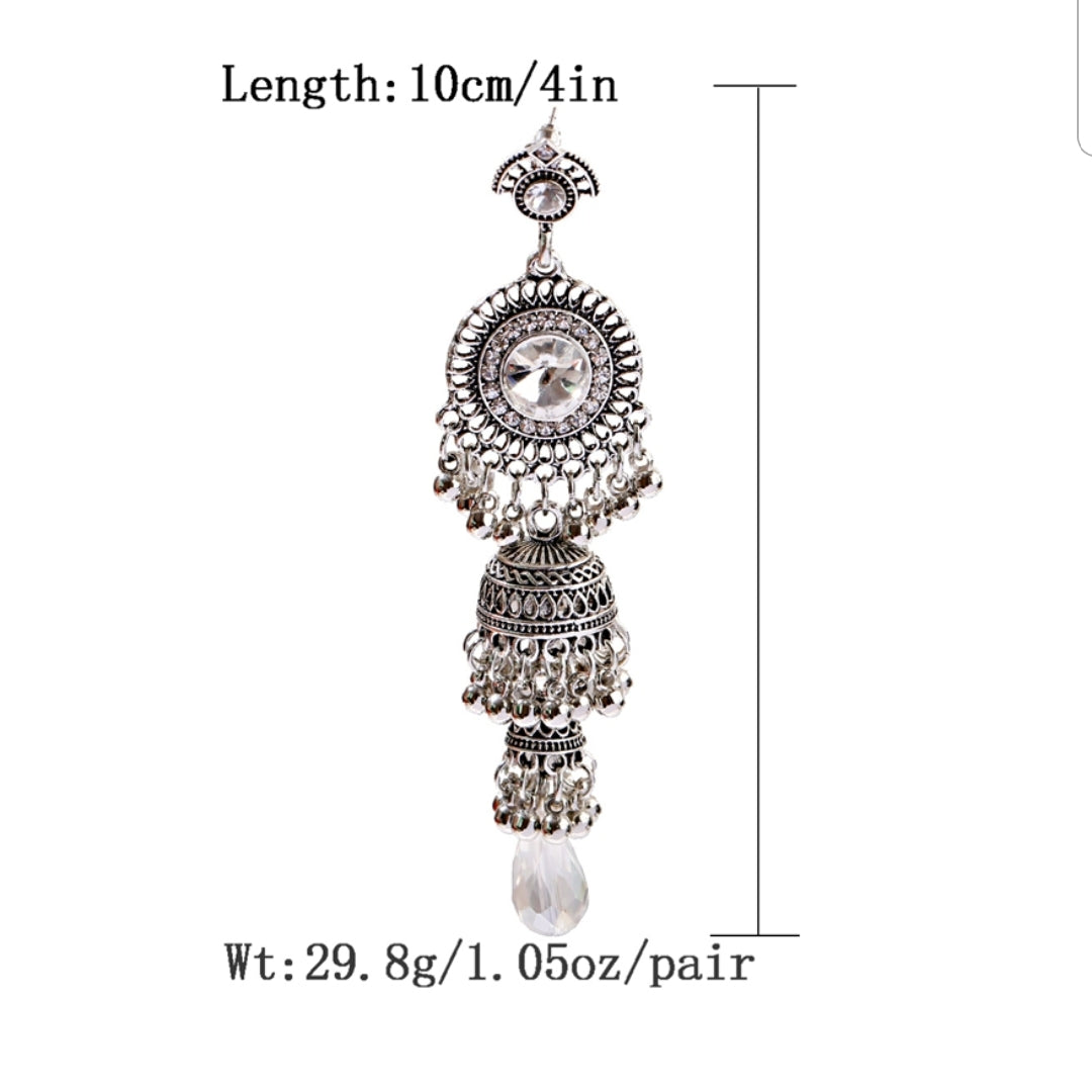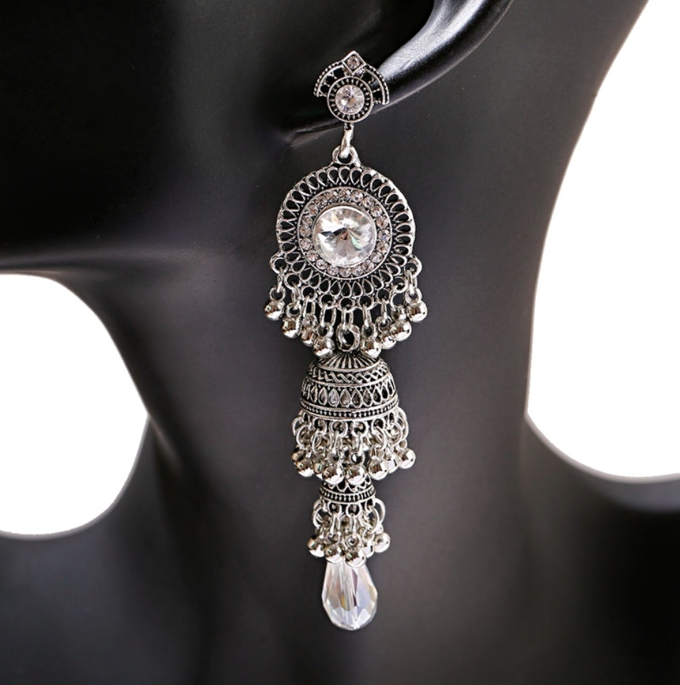 Silver Indian Long Hanging Jhumka Round Earrings Pair