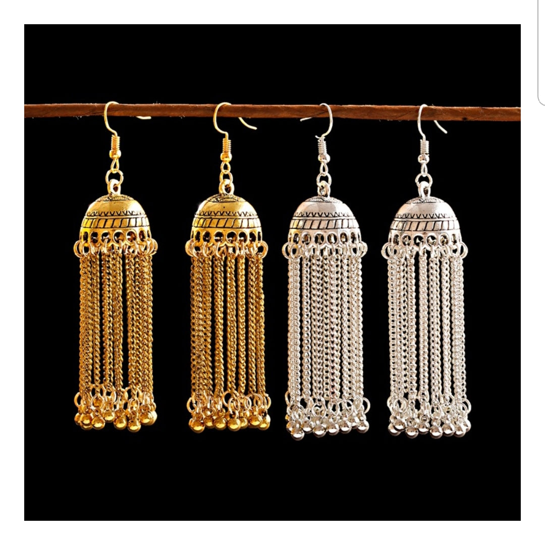 Imagine if you could be satisfied and content with your purchase. That can very much be your reality with the Silver Indian Long Hanging Jhumka Round Earrings Pair.