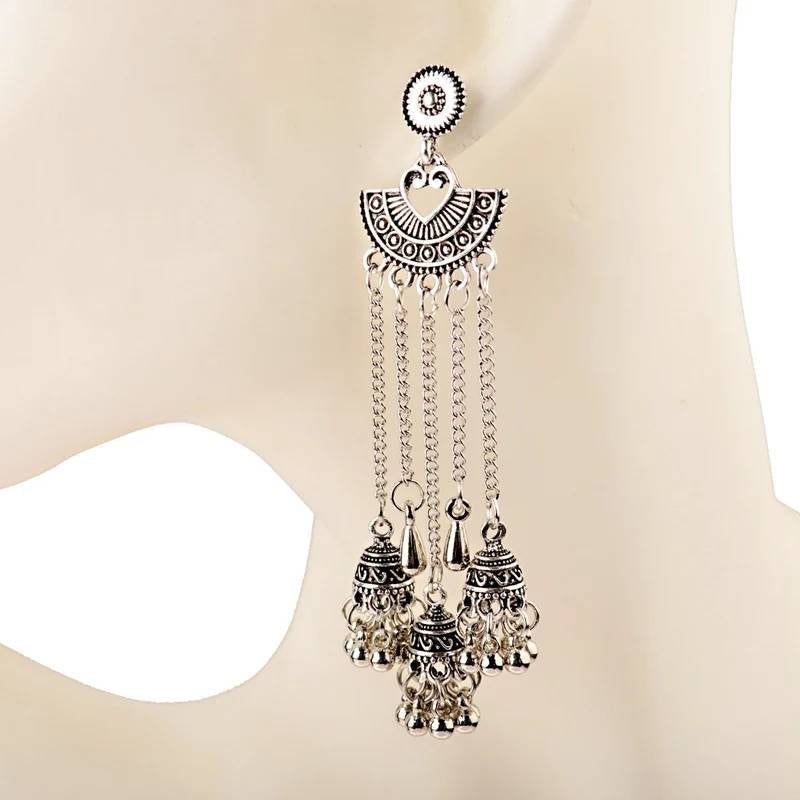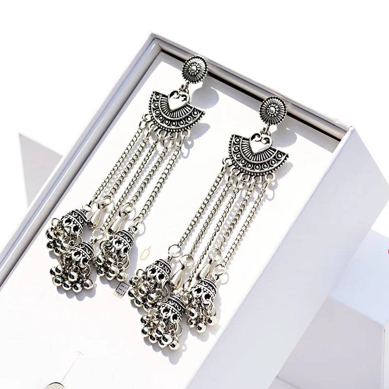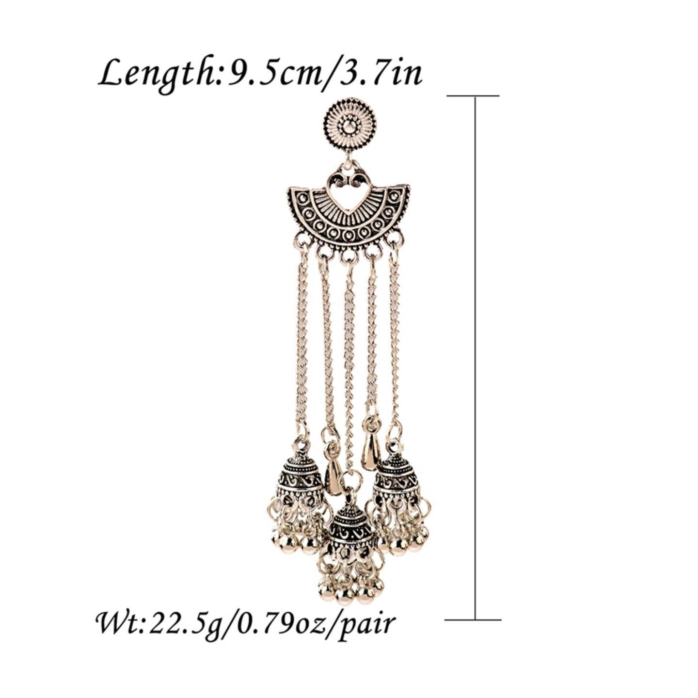 Silver Indian Long Hanging Jhumka Round Earrings Pair