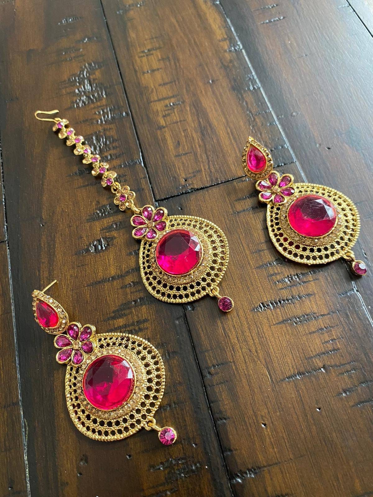 Indian Earrings, Tikka and Earrings Set, Indian Jewelry