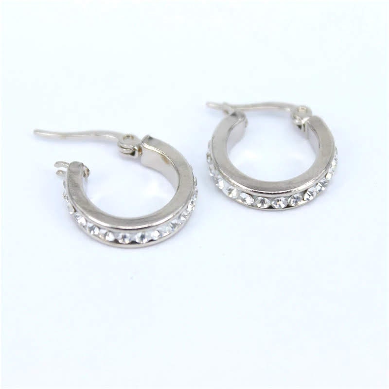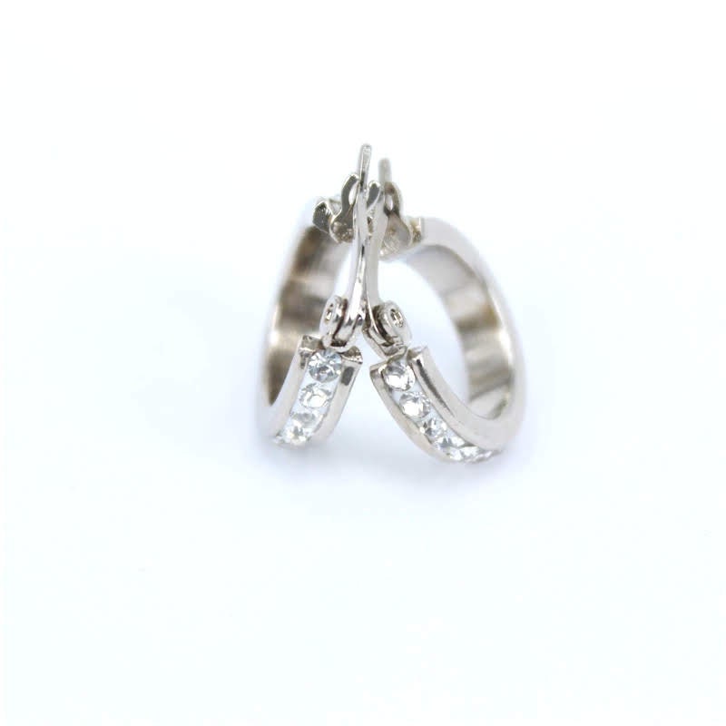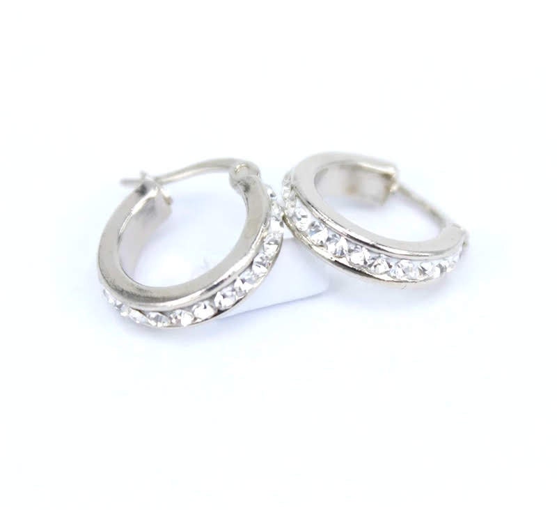 Titanium Silver Crystals Snap Back Hoop Earring Pair, Hypoallergenic