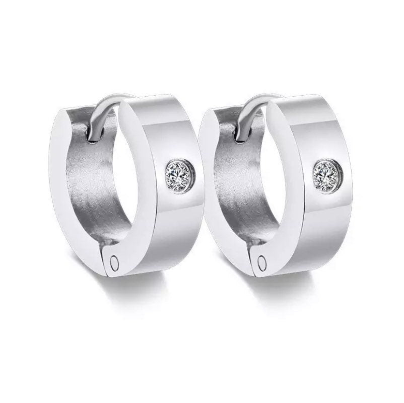 Titanium Silver Snap Back Hoop Earring Pair, Hypoallergenic, Minimalist