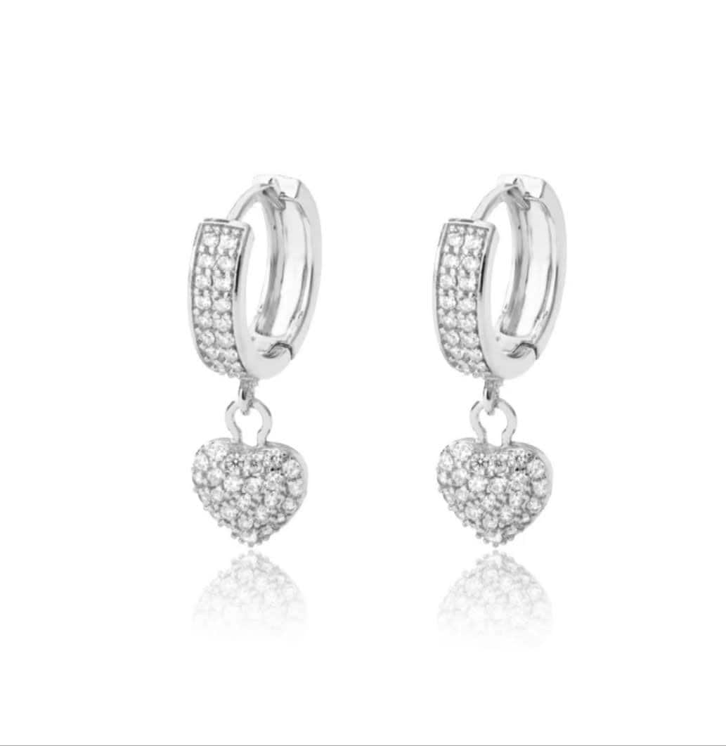 Solid Titanium Silver Heart Hoops With Snap Back Closure