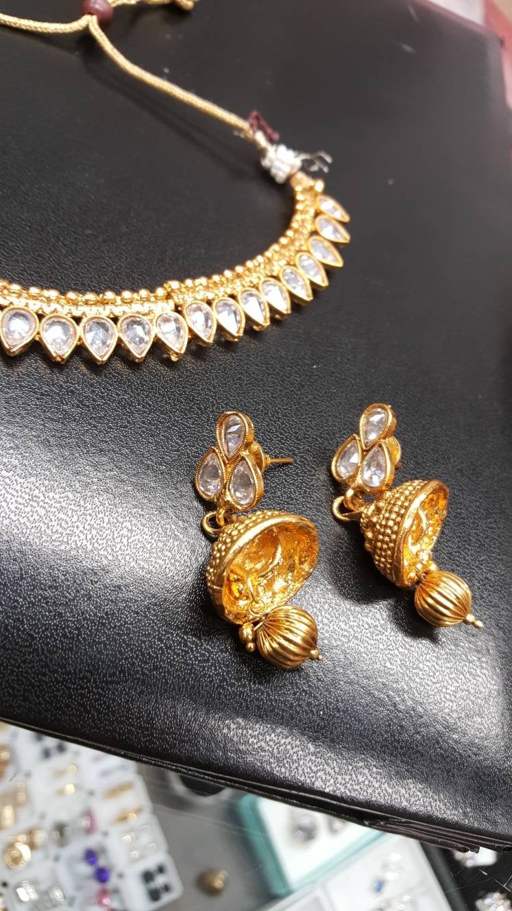 The Rani Gold Kundan Crystal Necklace & Crystal Earring Set is a sensational customer favorite, and we hope you like it just as much.