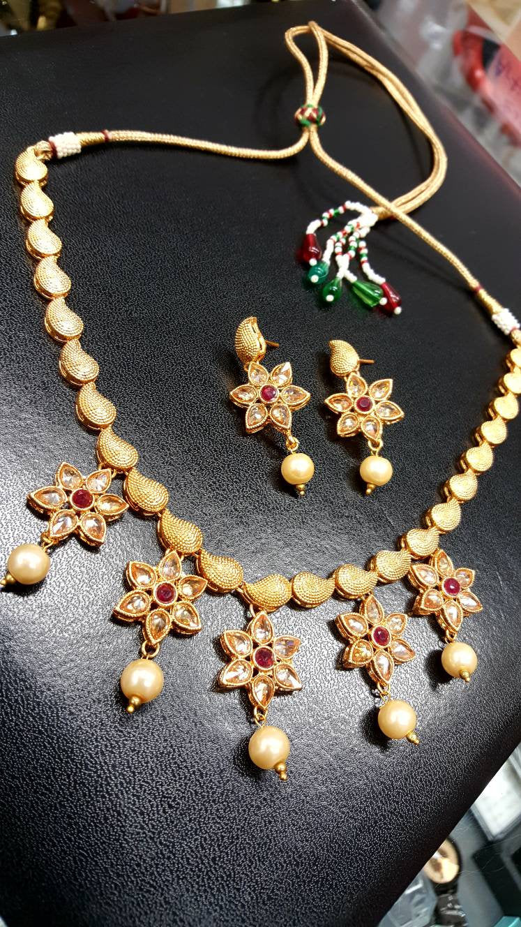The Rani Kundan Red Flower Necklace & Crystal Earring Set destined to impress, and priced at only $169.37, for a limited time.