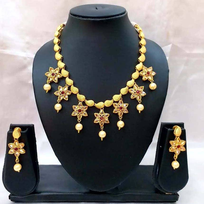 Rani Kundan Red Flower Necklace & Crystal Earring Set