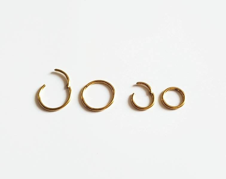 Solid Titanium Body Jewelry, 8mm, 10mm, 12mm, Nose Clicker, Cartridge, Septum, Earrings. Available in Gold & Silver -18Guage ✔ Hypoallergenic Titanium Metal* ✔ Medical Grade* ✔ Smooth Inner Design For Comfort* ✔ Water Proof / Safe For Swimming and Showering ✔ Nickel-Free SHIPPING: Processing times are 1-2 business days. See our shipping policies or our shop announcement for estimated arrival times. PACKAGING: All orders will come shipped inside a Beautiful Felt Pouch