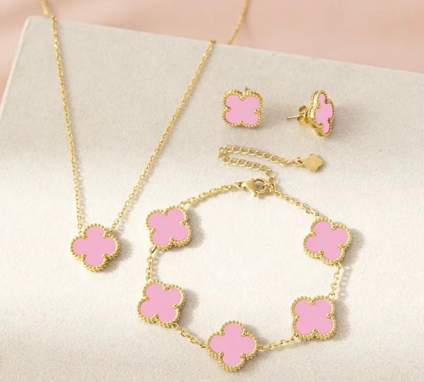 18K Titanium Gold Waterproof Four Leaf Clover Jewelry Set
