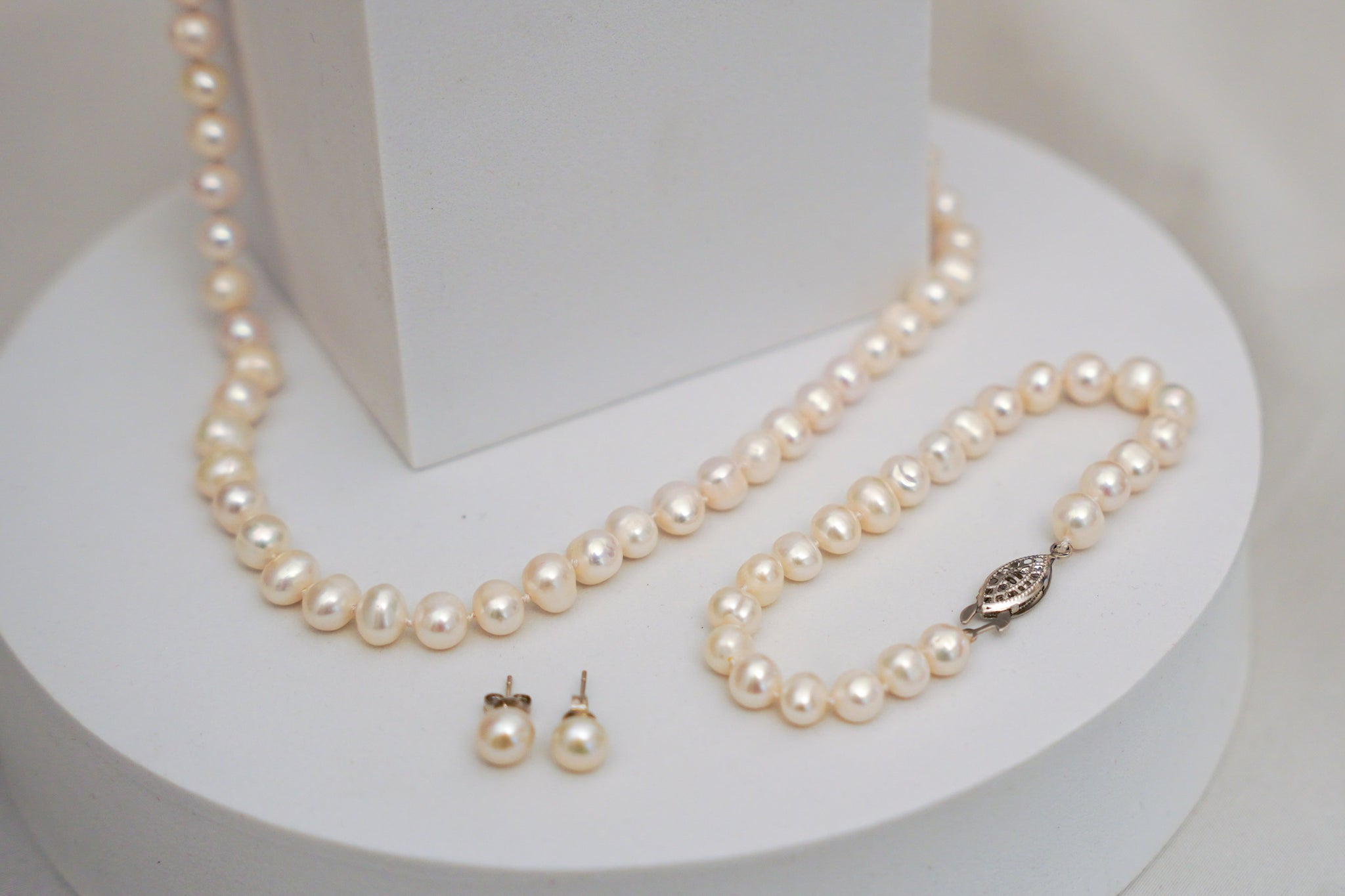 Fine and Elegant 3pc Natural Freshwater Pearl Set