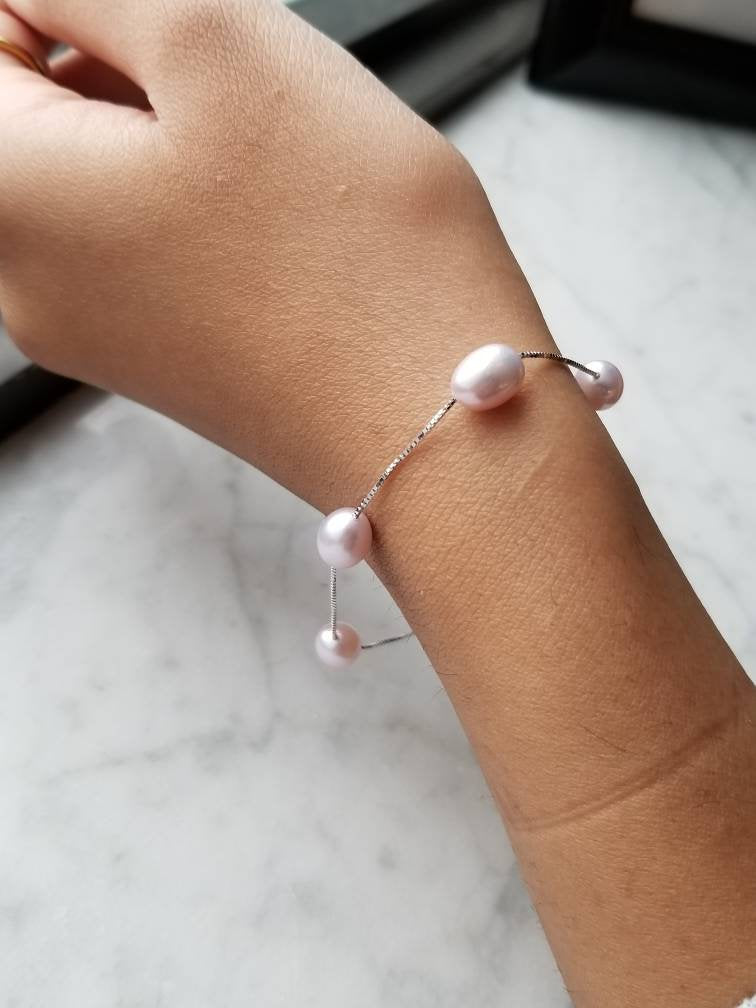 Purple Natural Freshwater 7mm Pearls Bracelet, 925 Sterling Silver Bracelet, Gifts for Her Gifts For Mum Birthday Gift Pearls Bracelets 18cm + 5cm Extension Bracelet Length 7mm Natural Pearl's 925 Sterling Silver Metal Other colours available in: ✔White Pearl ✔Blue Black Pearl's ✔Pink Pearls ✔ Hypoallergenic ✔ Can be worn while swimming/bathing ✔ Nickel-Free ✔ Sensitive Skin SHIPPING: Processing times are 1-2 business days. See our shipping policies or our shop announcement for estimated arrival times.  PACKAGING:  All orders will come shipped inside a Beautiful Felt Pouch